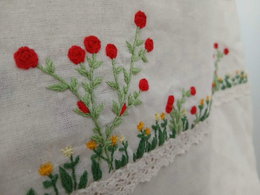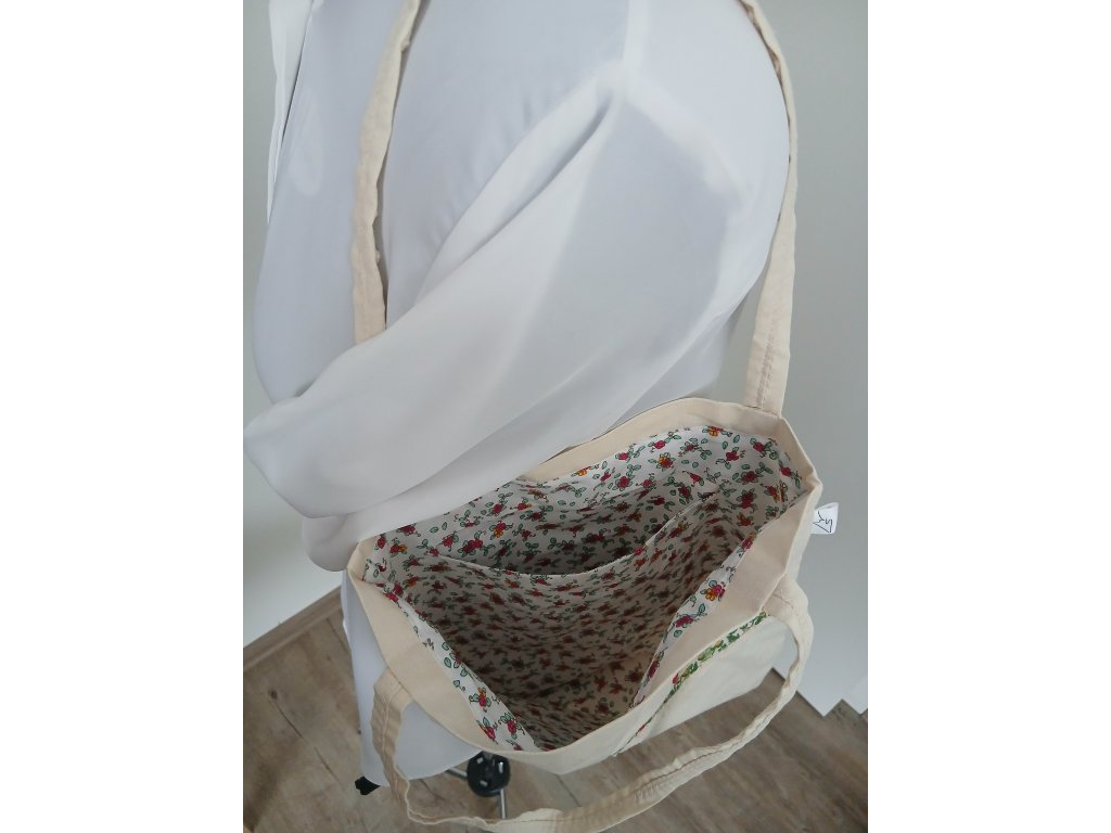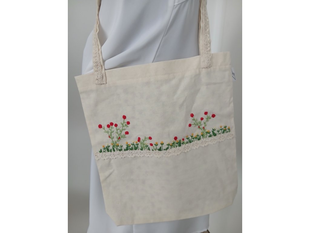 Jednoduchá plátěná taška s jednoduchou výšivkou květin